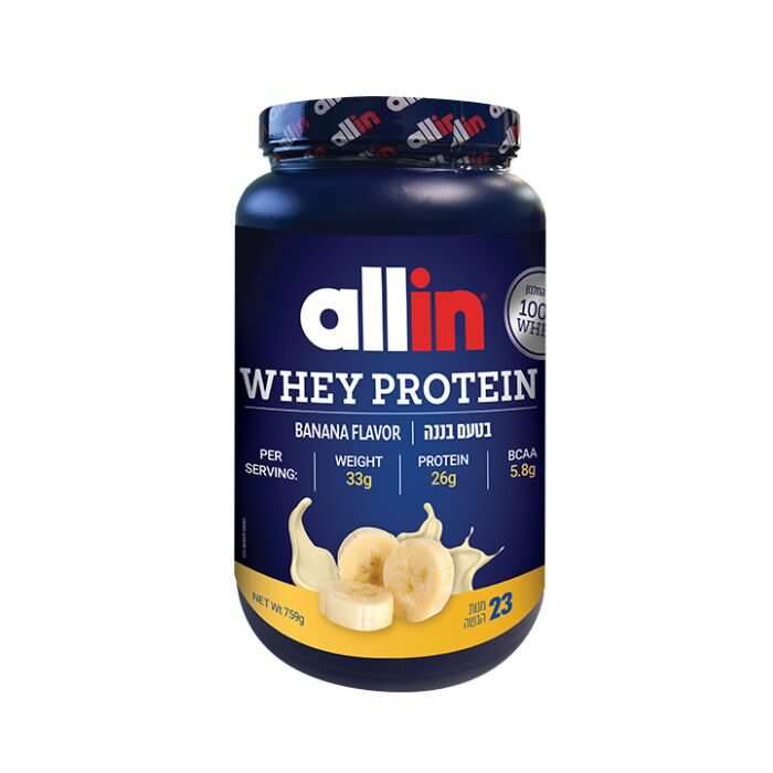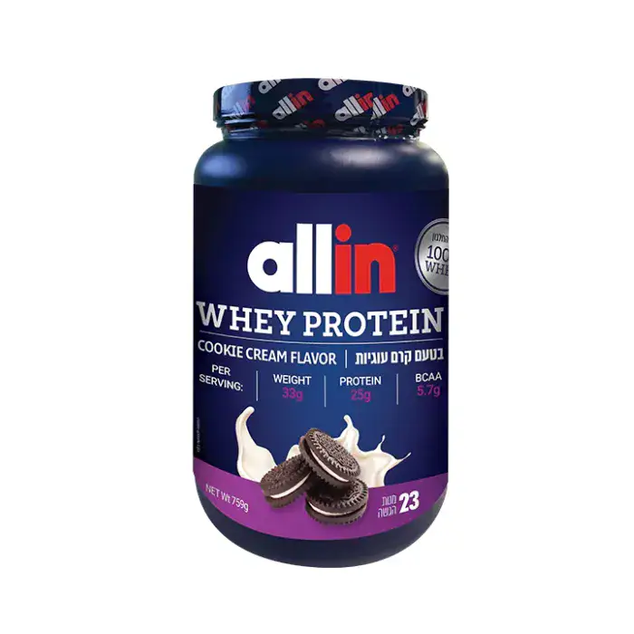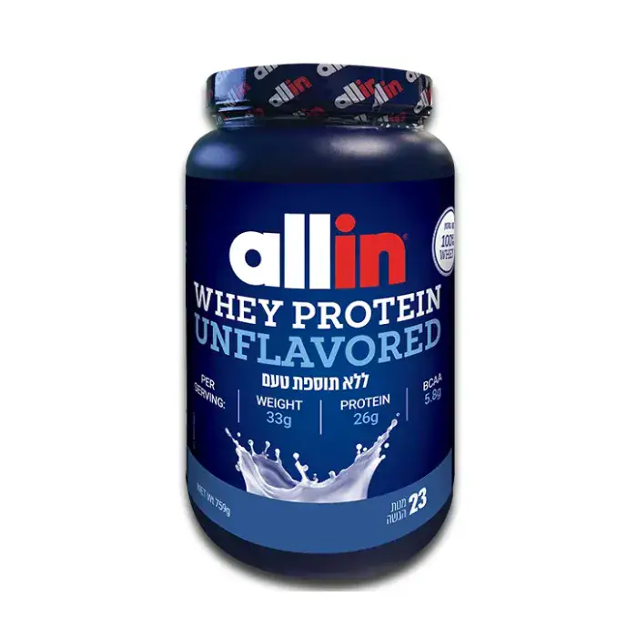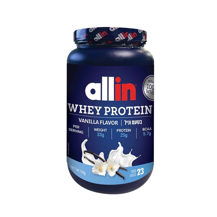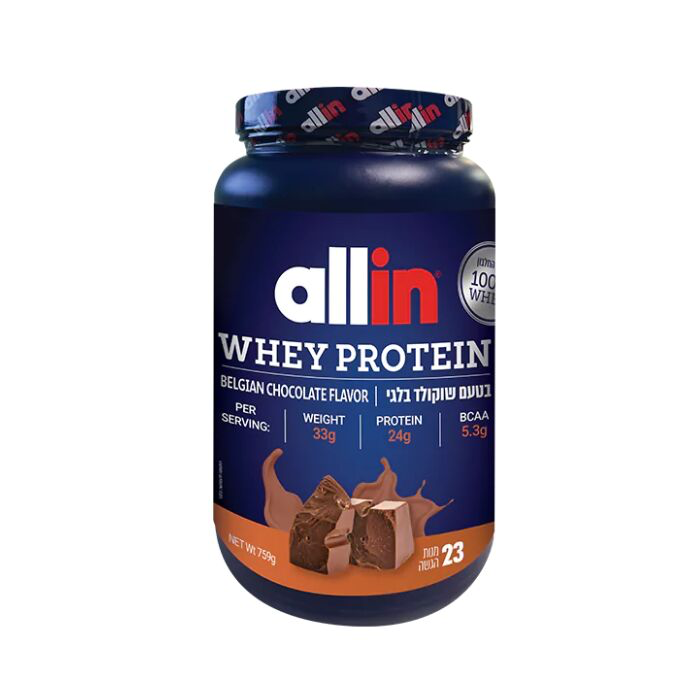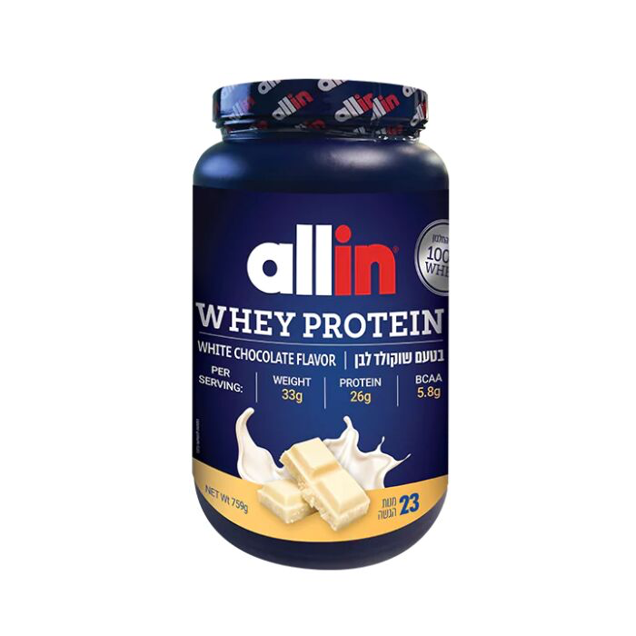 אבקת חלבון איכותית מבית אול-אין: אריזה במשקל 759g.