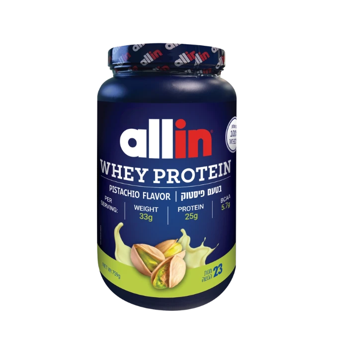 אבקת החלבון של All In מבוססת על שילוב של חלבון מי גבינה עם חלבון איזולייט טהור, בתהליך ייצור מוקפד הנשען על ידע ומחקר מקצועי.